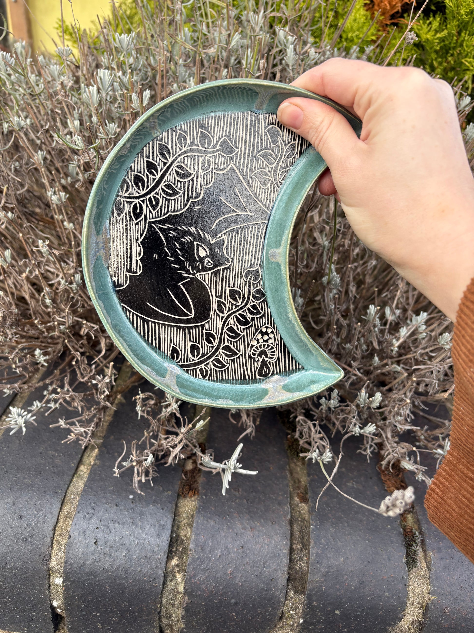 The beauty of Earth is the inspiration of my work, each piece being one of a kind just like so many things in nature. I hand draw using the sgraffito technique and feel the lines create a flow that transfers my energy into each piece.