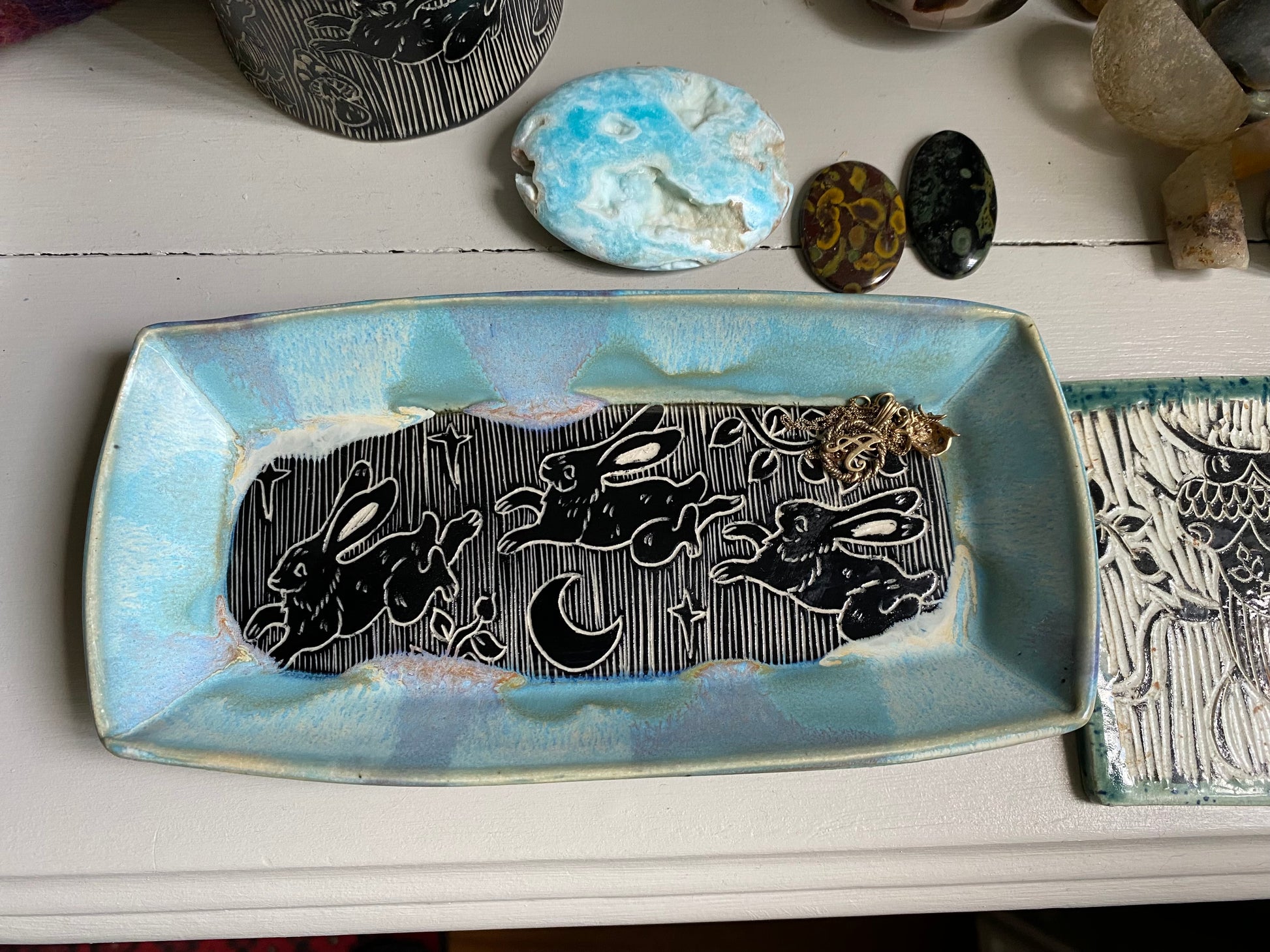 Each attendee will be decorating a plate or pair of trinket trays, painted in a black underglaze, ready for carving.